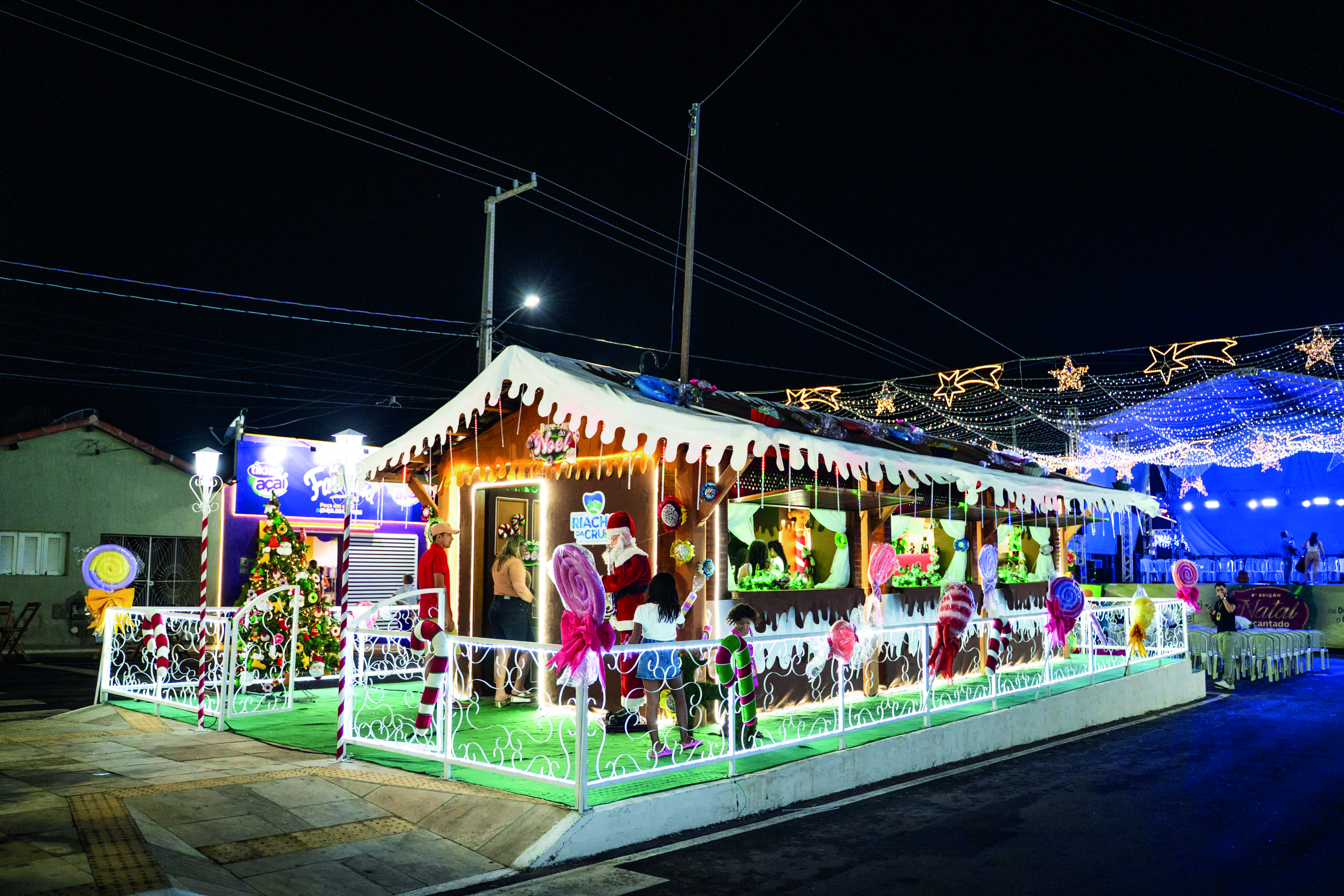 Toda a programação se dá em meio a uma Riacho da Cruz completamente decorada para o Natal, com luzes por toda a cidade e, inclusive, uma casa do Papai Noel. Um dado que pode dar uma ideia do tamanho da festa: para iluminar a cidade, foram instalados 26 mil metros de mangueira de LED.